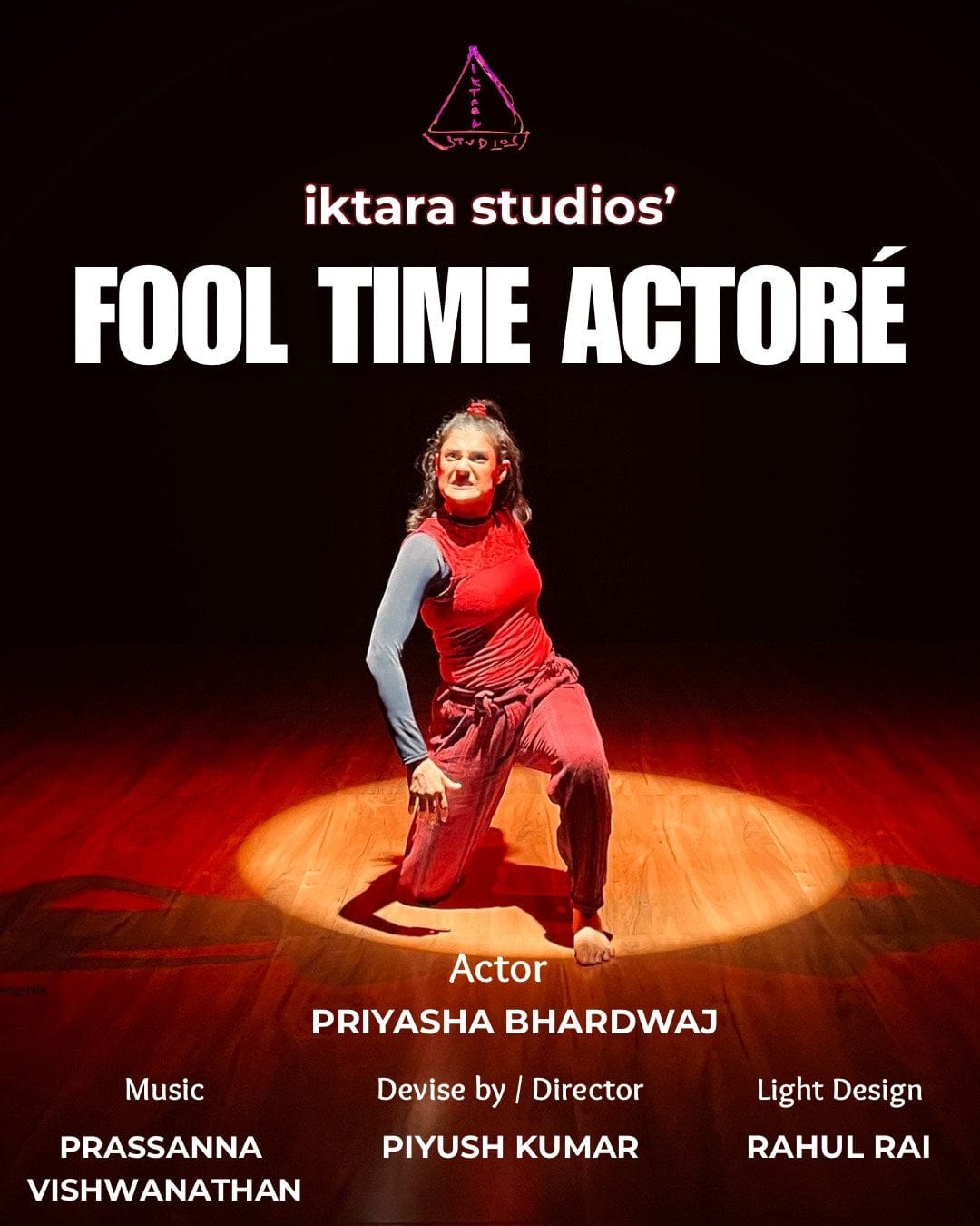 Fool Time Actoré is a riotous dive into the whirlwind life of a working actor, as Priyasha masterfully clown- bombs her way through a day packed with her rituals, roles, rejections, and resilience. Blending physical comedy, multilingual madness, and a splash of emotional chaos, she flips the script on what it means to survive in the cut throat world of showbusiness.