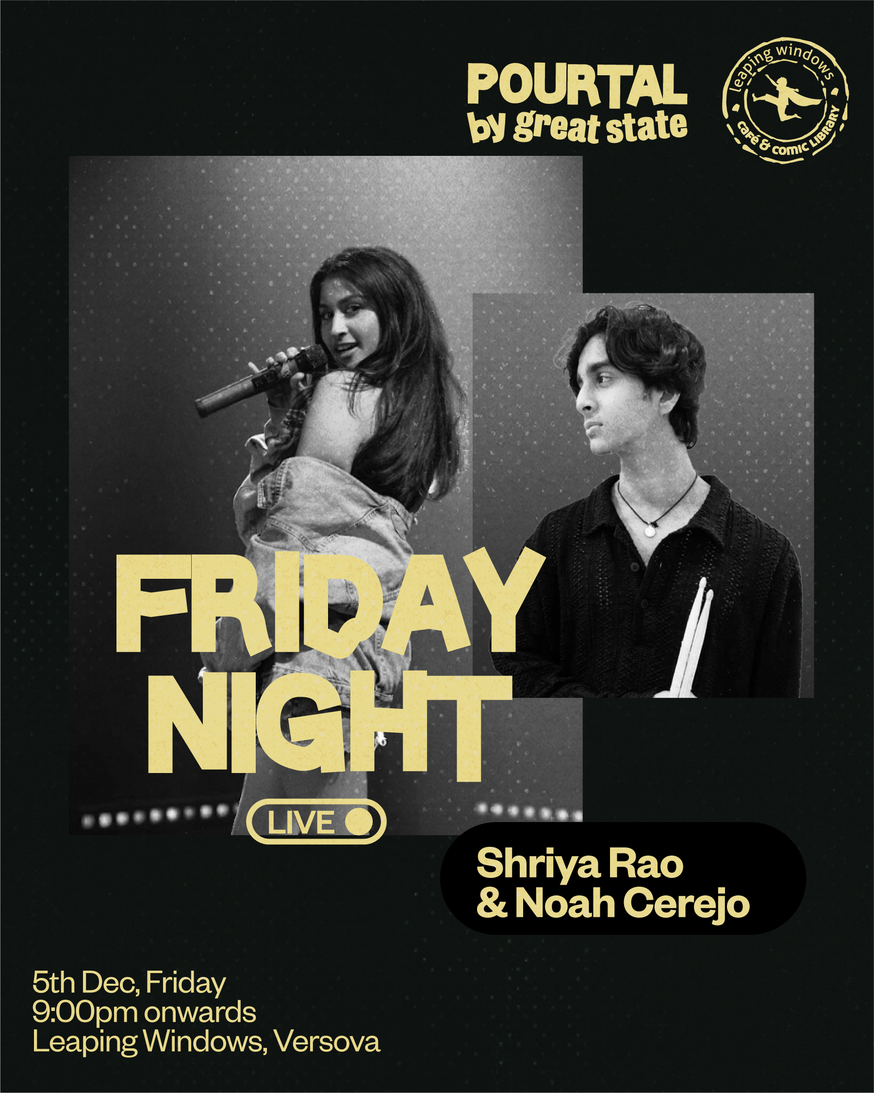 A stripped-down piano-and-vocal set by Shriya Rao and Noah Cerejo. Their duo performance blends modern and old-school neo-soul. The evening features Shriya’s beloved originals and the very first song they’ve created together, marking the start of many more collaborations.