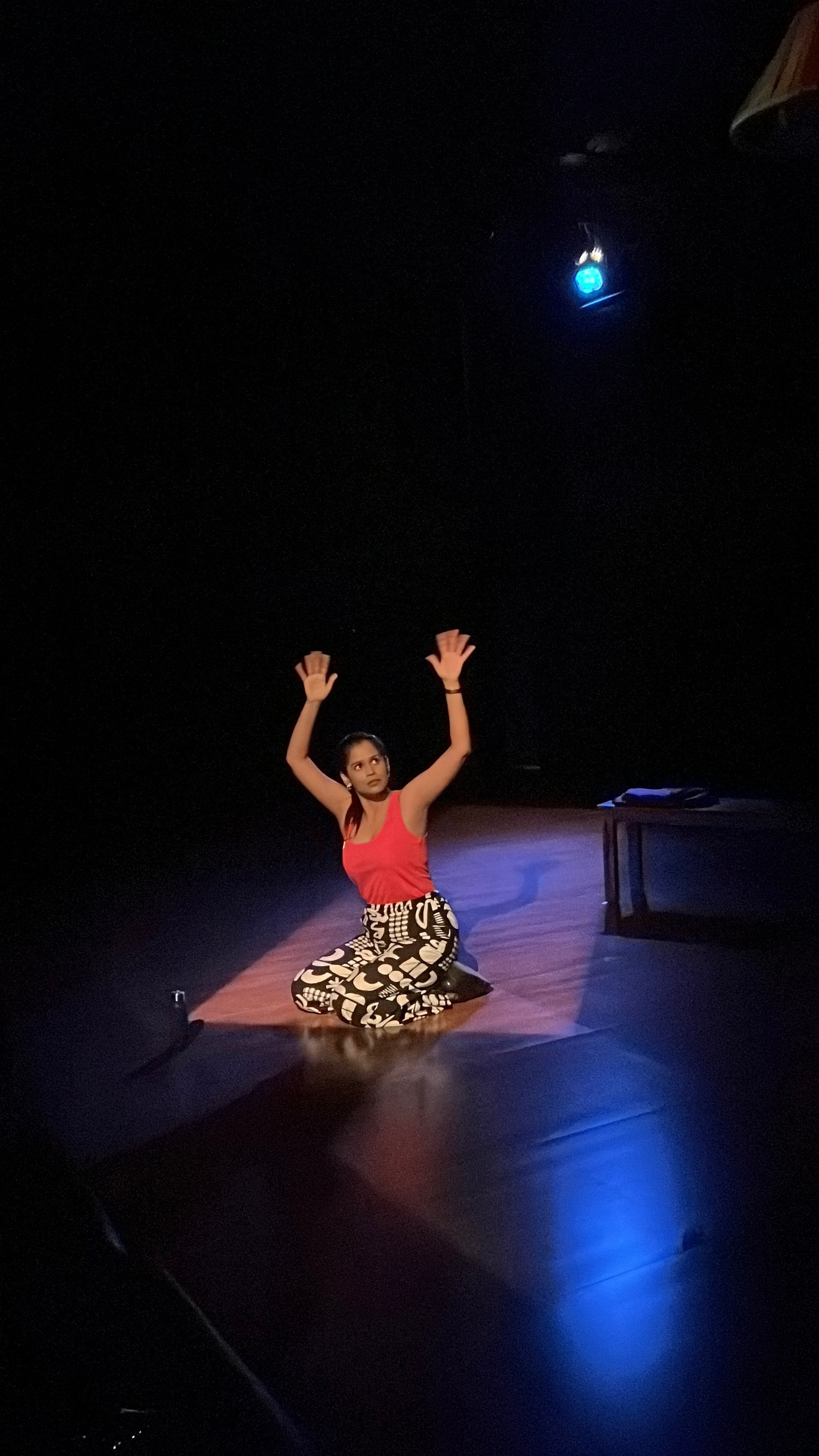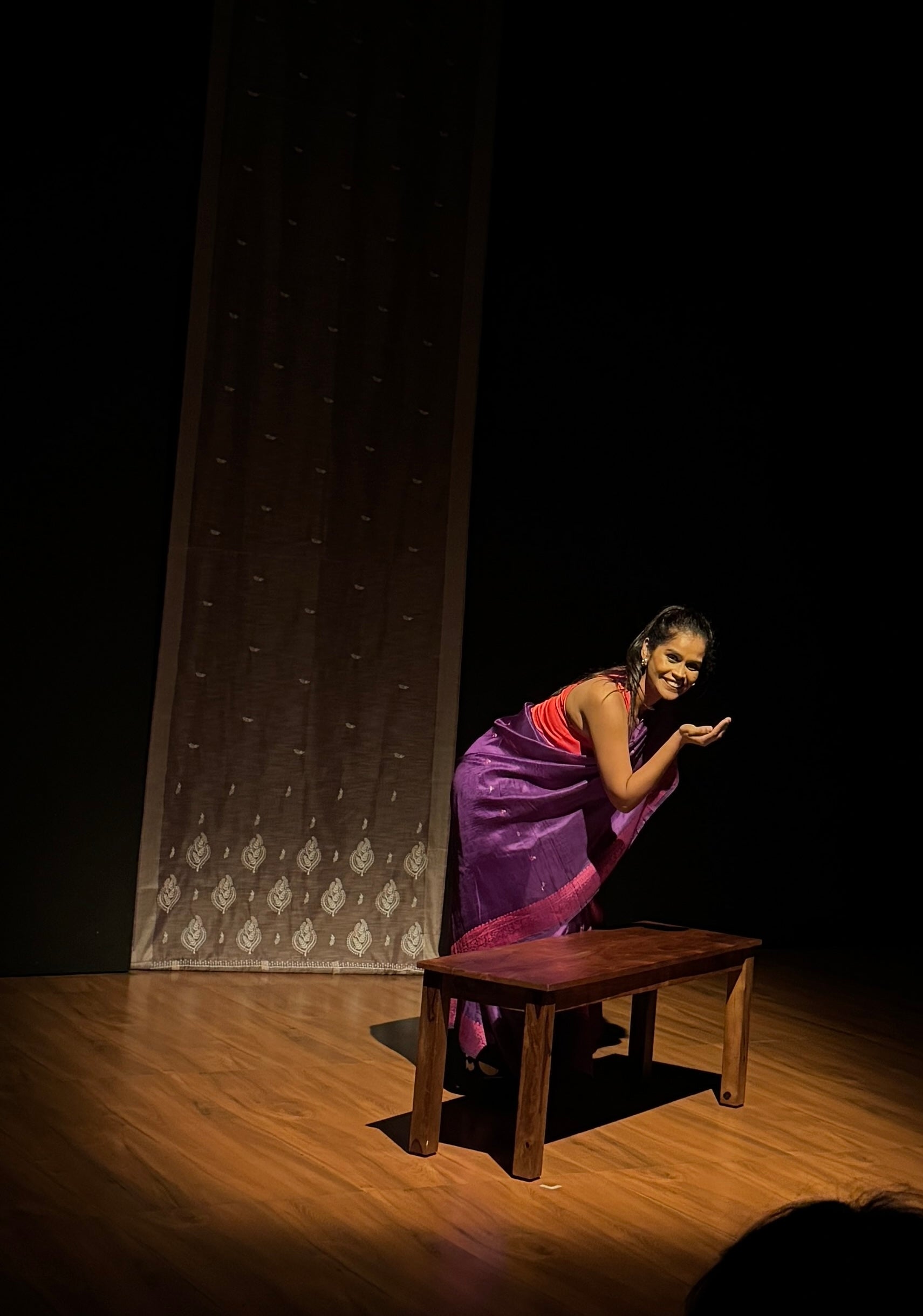 She is a dedicated student of the Natyashastra, having studied under Venu G, and has completed several intensive phases of the Navarasa Sadhana programme at Natanakairali in Kerala. In addition, she has explored the art of clowning at a foundational level as part of her expanding skill set.