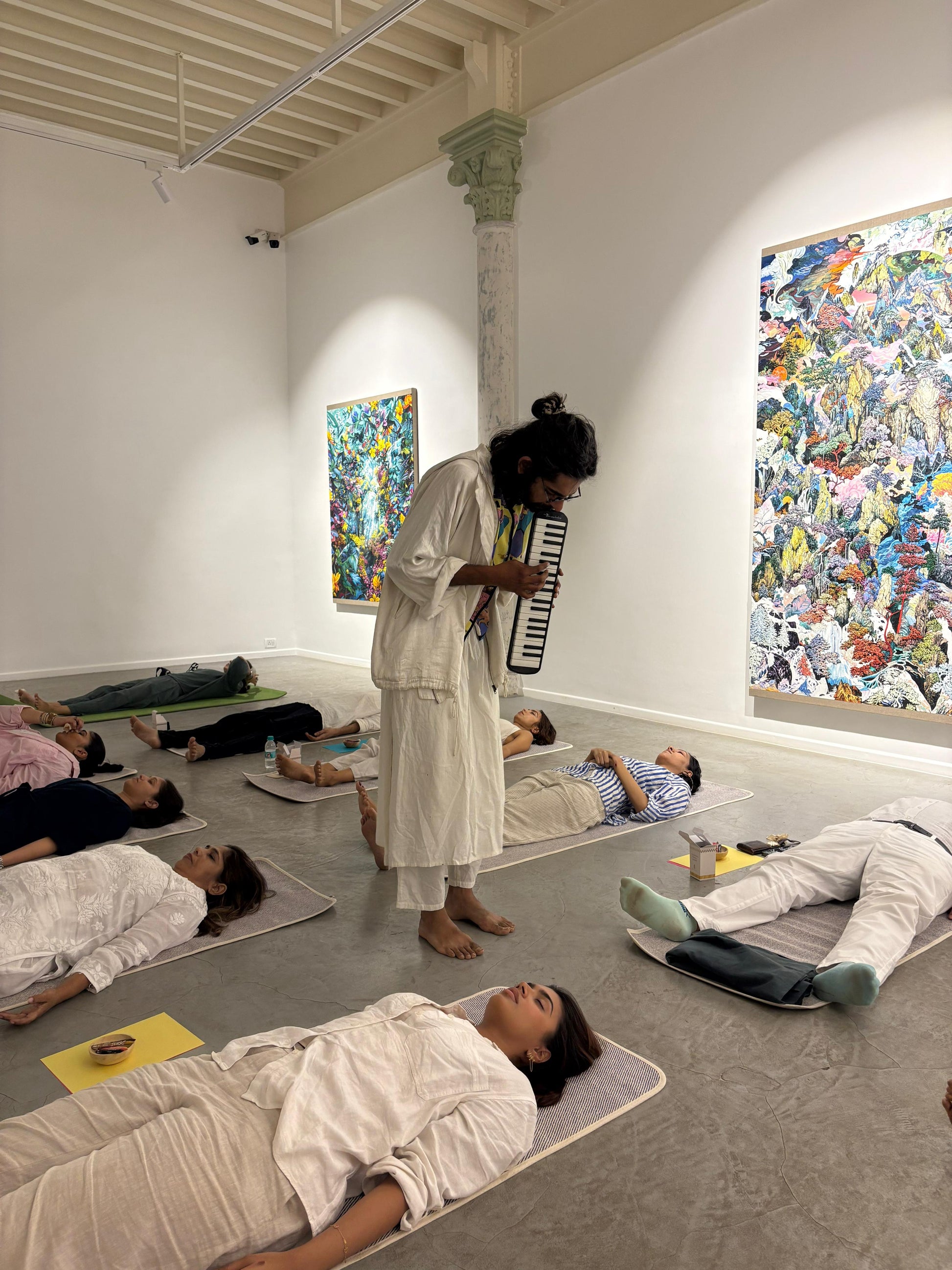 A himachali forest sound immersion with live samples of streams, dry grass, shepherds calls, and folksongs as he narrates wisdom of the tribes while Indian classical live music helps mind, body and soul come together on one floor.